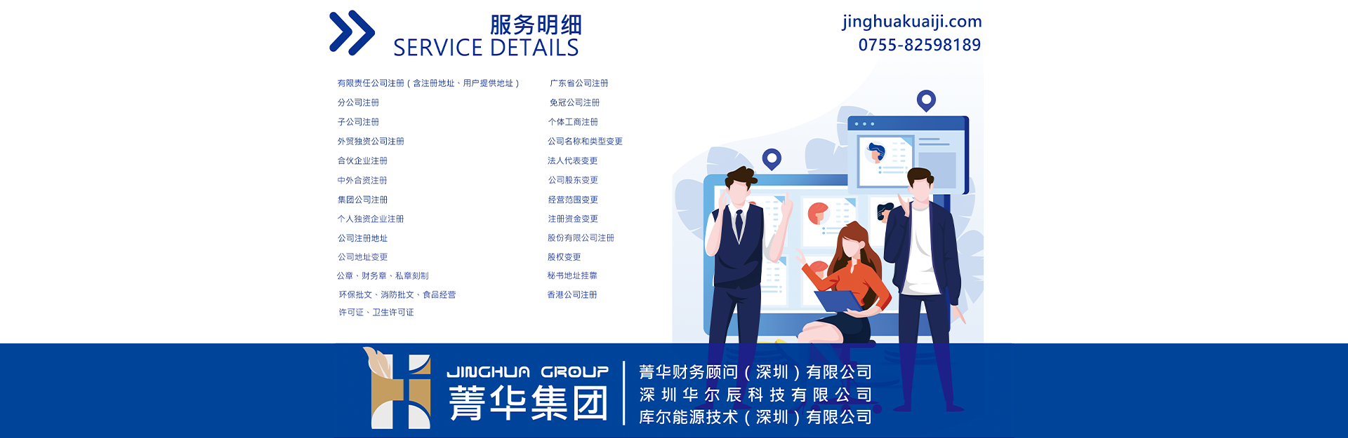 公司主要業(yè)務(wù):深圳代理注冊公司,代記賬/代理記賬/工商變更/公司名變更注銷/勞務(wù)派遣/食品經(jīng)營/建筑資質(zhì)許可證辦理/商標(biāo)注冊/審計(jì)年報(bào)/稅務(wù)籌劃等